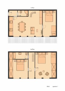 For the variability of your arrival and departure,are provided key mailboxes at the entrance of the building with a numeric code, which will be sent to the contact telephone number after the financial conditions have been settled. Each mailbox is described by the number of the apartment you have booked. After picking up the key from the clipboard, select the “000” code. When re-inserting the key into the clipboard, select the code already mentioned, insert the key, locking the locked position, and select the “000” code again.
